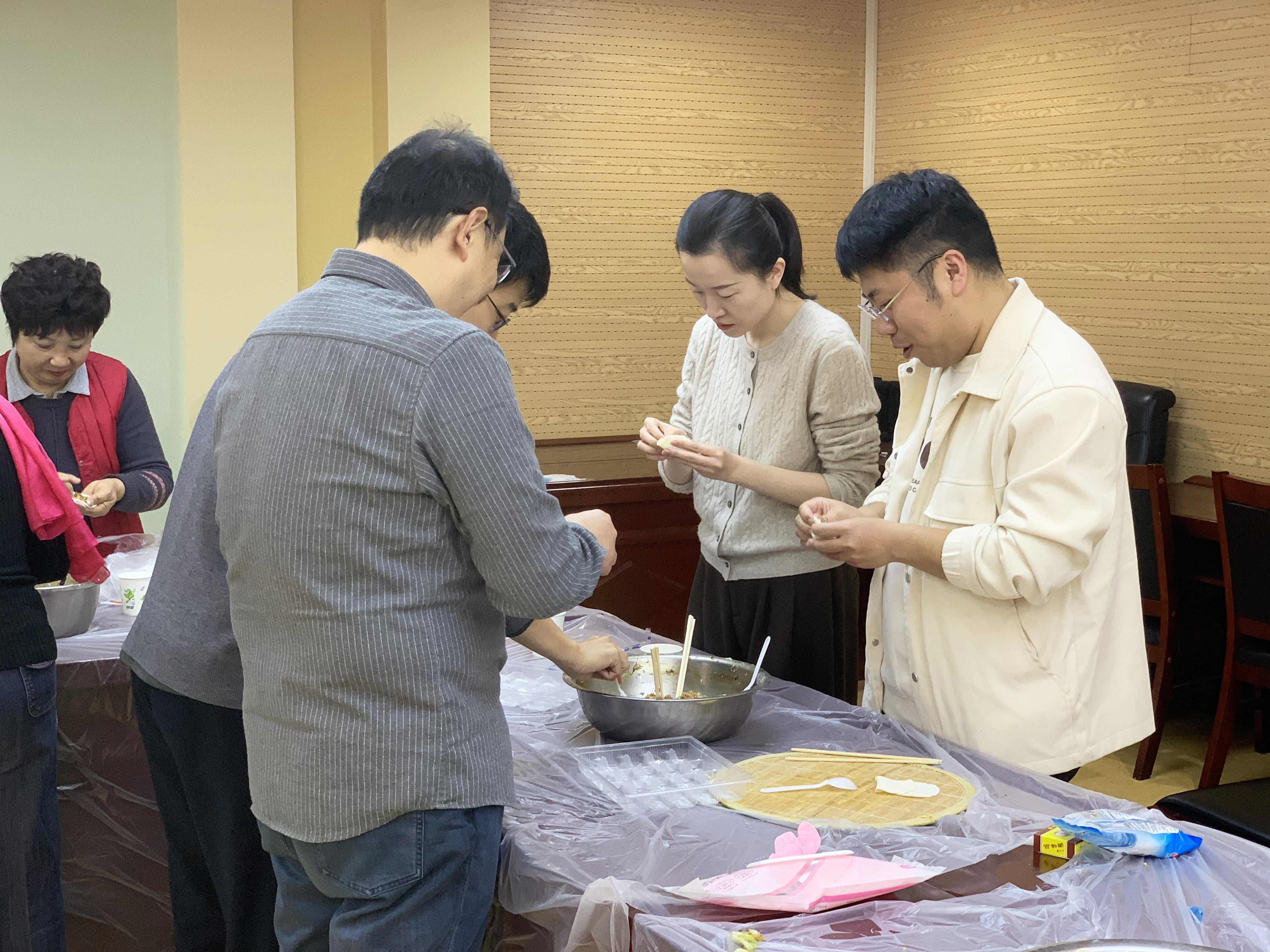 上午7时,社区活动室内暖意融融。此次活动汇聚了机关党员、辖区企业职工、社区志愿者等多方力量,大家提前备好面粉、馅料、擀面杖等食材工具,分工明确、默契配合。考虑到要照顾老年人的普遍口味,本次活动特意准备了鲜香软烂的白菜猪肉馅,还细心地将饺子包得小巧易入口。志愿者们一边忙碌,一边念叨着提前摸排好的老人喜好,把对老人的细致关怀融入每一个饺子中。