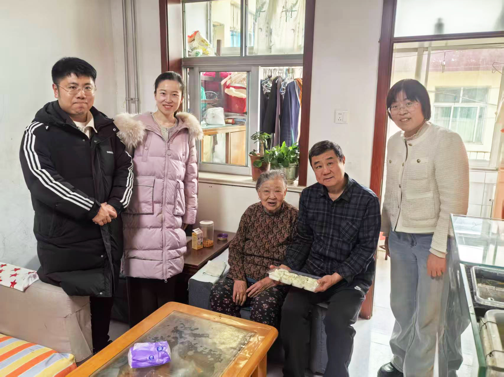 经过3个多小时的忙碌,志愿者们精心包制了近千个饺子并分装完毕,随后分成多个小组,逐一走访社区老党员和独居老人家庭。在82岁的社区老书记杨奶奶家中,志愿者们送上暖心水饺,并与老人促膝长谈,询问她的身体状况和生活需求,倾听老人讲述过去的党员故事。“感谢党和政府一直想着我们,这饺子吃在嘴里,暖在心里!”杨奶奶感动地说,眼里满是笑意。