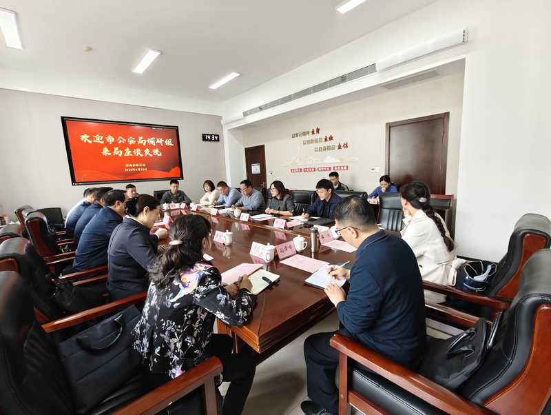 4月22日,市公安局党委委员、副局长吴海一行到市审计局开展智能审计相关工作调研。市审计局党组成员、副局长黄茜参加调研座谈。