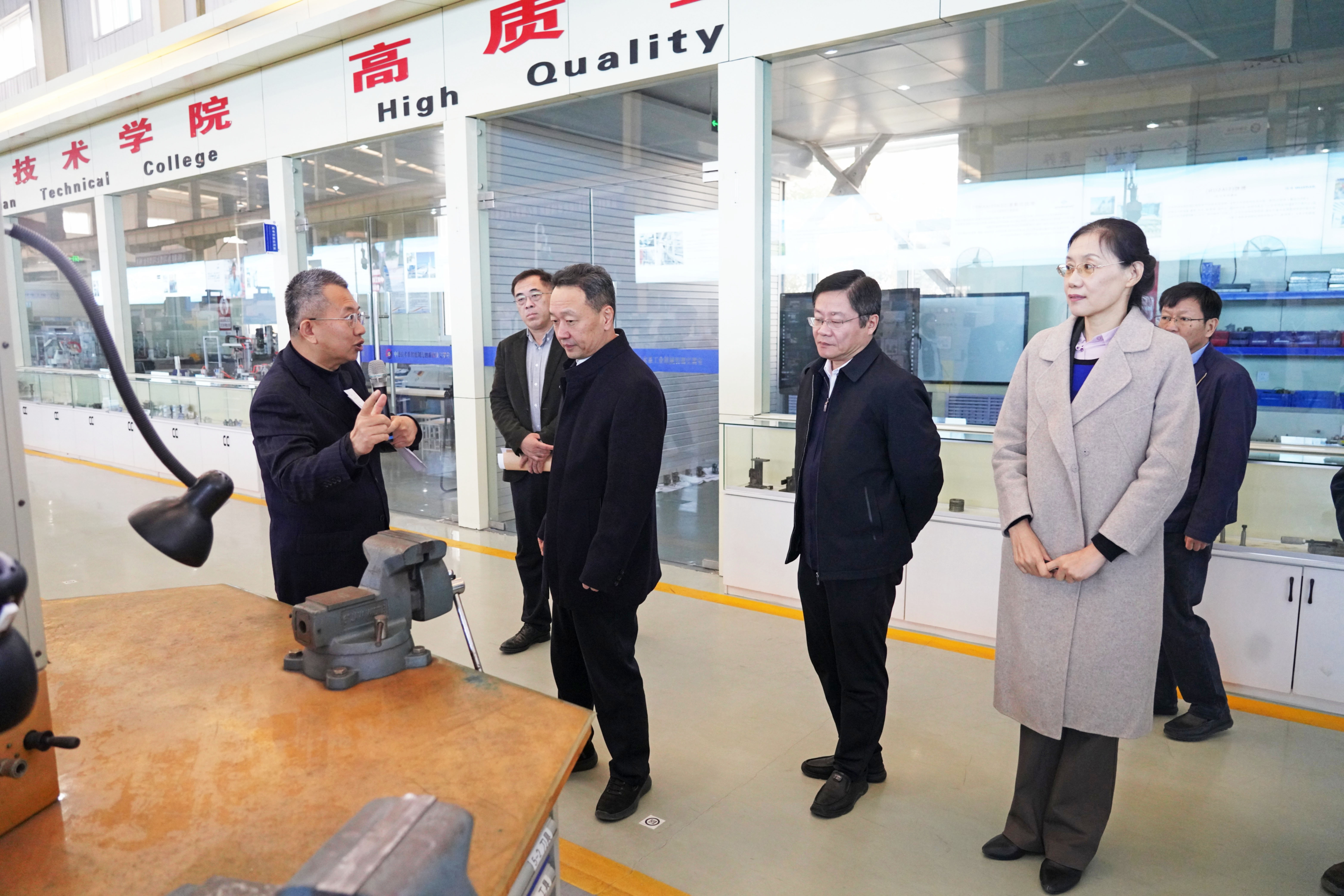 会后,丁林桥深入校园开展实地考察,先后走访中德技术系实训中心、智能制造系工程训练中心、新能源汽车智慧实训中心、新能源汽车产教融合实践中心,详细了解学院实训基地建设、实践教学改革、校企合作项目运营及人才培养成效等情况。