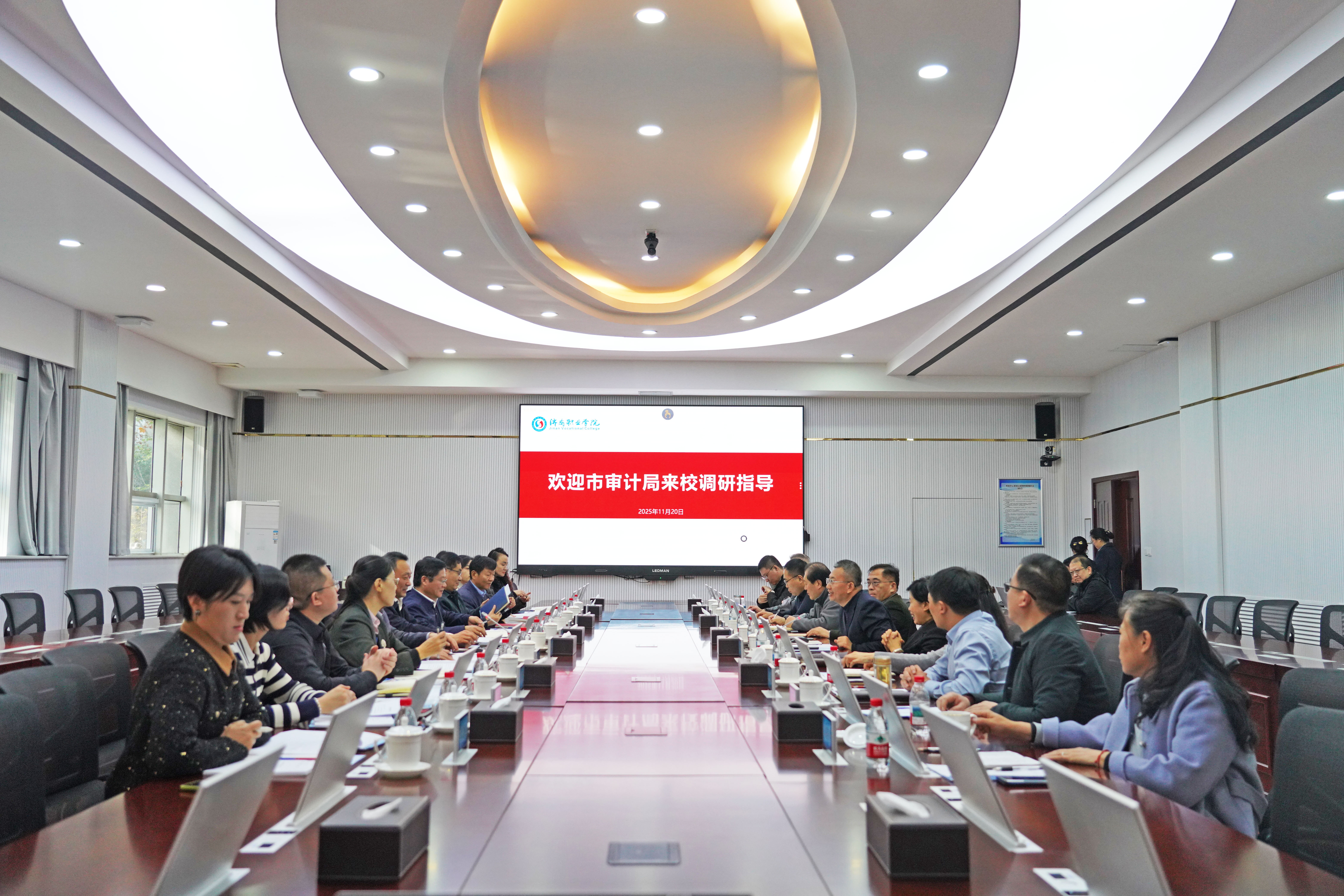 11月20日,市审计局党组书记、局长丁林桥赴济南职业学院开展调研,并到市审计局驻济南职业学院审计现场指导工作。济南职业学院党委书记苏旭勇、院长尹元华参加调研。