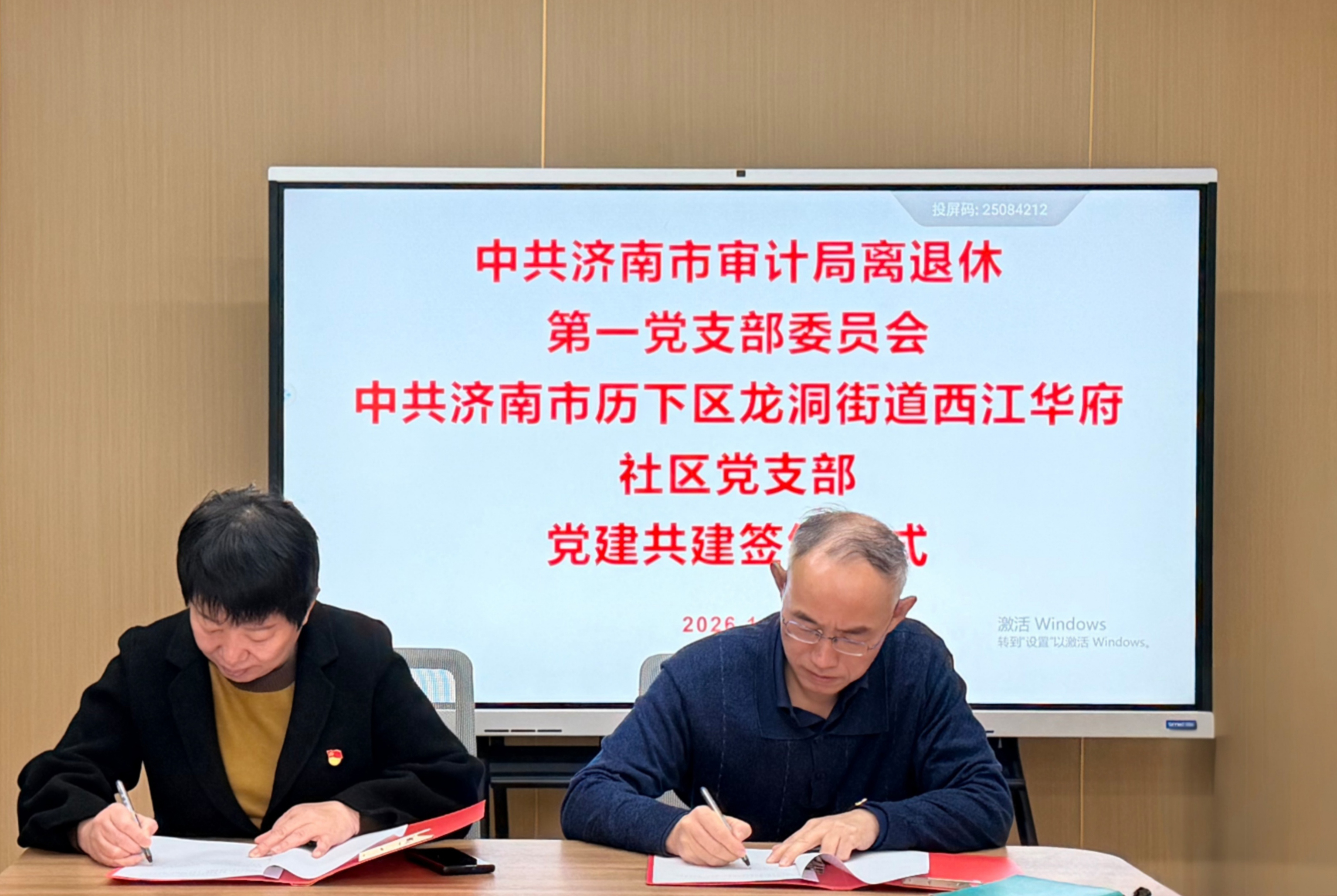 近日,市审计局离退休党组织与历下区龙洞街道西江华府社区党组织正式达成党建共建合作,以“组织共建、资源共享、服务共办、治理共促”为核心,深化基层党建融合,筑牢基层战斗堡垒,为提升社区治理效能、增进群众福祉注入强劲红色动能。